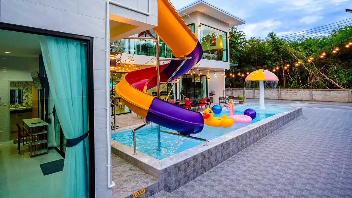 - Night: pool lights on; great for cake and toast photos.